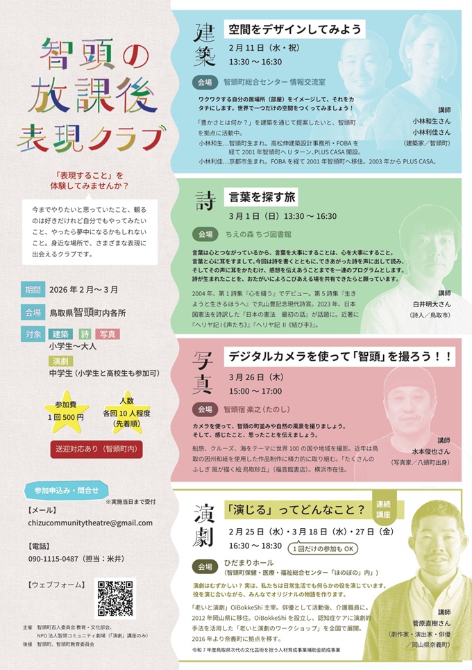 智頭の放課後表現クラブは、さまざまな分野に触れながら「表現すること」を楽しむ時間です。